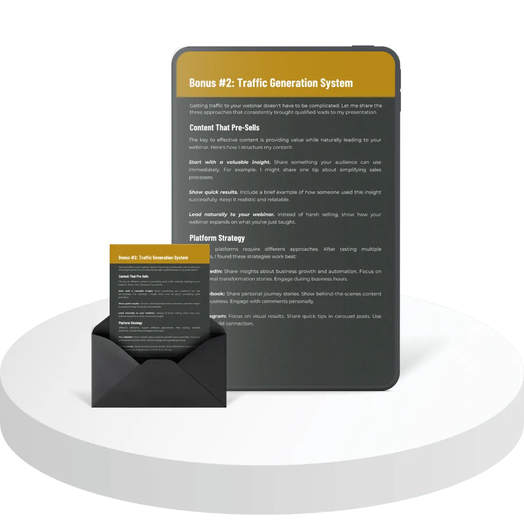 Instead, you need a simple, proven way to generate consistent sales—something that doesn’t require hours of prep or tech headaches, so you can finally enjoy the freedom and financial security you’ve been dreaming about.